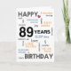 Celebrate the remarkable 89th birthday with our charming Happy 89th Birthday card! Whether it's for your beloved mom, cherished dad, dear brother, or beloved sister, this card offers a beautiful way to convey your sincere wishes and fill their special day with love and happiness. The front of the card features "Happy Birthday" alongside the prominent number 89, symbolizing decades, years, months, weeks, days, hours, minutes, and seconds, emphasizing the importance of this extraordinary milestone.