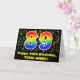 This cheerful, colorful, and exciting birthday-themed greeting card design features a large number "89" with a rainbow spectrum gradient inspired pattern, along with the message "Happy 89th Birthday,", and a personalized recipient name. The front also features a pattern of various music notes and symbols having a variety of colors and sizes. The inside features a customizable birthday greeting message, or could perhaps be cleared and left blank if a message is to be written by hand instead. A personalized birthday greeting card like this might be sent to celebrate a music composer’s, a musician’s, a singer’s, or somebody else’s eighty-ninth birthday. [~Z0000426]