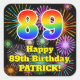 89th Birthday: Fun Fireworks Look, Rainbow # 89 Square Sticker