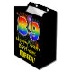 This fun, colorful, and exciting birthday themed giftbag design features a large number "89" with a rainbow spectrum gradient inspired pattern, along with the message "Happy 89th Birthday,", and a custom recipient name. It also has a colorful background pattern inspired by bursting celebratory fireworks. A gift-bag like this might be used when giving a gift or present in honor of somebody’s 89th birthday. [~Z0000509]