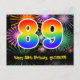 89th Birthday – Fun Fireworks Pattern + Rainbow 89 Postcard
