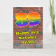 This vibrant and fun urban street art and graffiti themed birthday greeting card design features a large number “89” having a colorful rainbow spectrum gradient inspired pattern. It also features the message “Happy 89th Birthday,”, and a personalized name. The background of the front features a brick wall pattern. The inside features an editable birthday greeting message, or could perhaps be cleared and left blank if a message is to be written by hand instead. A vibrant, editable birthday greeting card like this might be a fun way to deliver a birthday greeting message to somebody who is celebrating their eighty-ninth birthday. [~Z0000586]