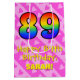 89th Birthday: Fun Pink Hearts Stripes; Rainbow 89 Medium Gift Bag