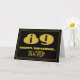 The front of this vintage style and 1920s-1930s style inspired birthday-themed greeting card design features a large art deco look inspired number "89", the message "HAPPY BIRTHDAY,", a custom name, and a border pattern consisting of lines. The background of the front is colored black. The inside features a customized birthday greeting message, or could perhaps be cleared and left blank if a message is to be written by hand instead. A personalized birthday card like this might be a fun way to acknowledge somebody’s eighty ninth birthday. [~Z0000506]