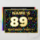 The front of this exciting eighty-ninth birthday party foil invitation card design features a custom name, a large number “89th”, the message “BIRTHDAY PARTY!”, and a border. The background of the front has a vibrant, multicolored star shapes pattern. The back features personalized details about the event, such as the date, time, venue, and any other useful information. Personalized invitations like these might be a fun way to invite guests to a birthday party being held in celebration of somebody’s 89th birthday. [~Z0000600]