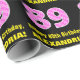 This joyful and fun birthday-themed wrapping paper design features a large number "89" having a light pink and dark pink stripes pattern containing heart shapes. It also features the birthday greeting message "Happy 89th Birthday,", and a customizable recipient name. Birthday themed wrapping paper like this might be used when giving a gift or present in celebration of somebody’s 89th birthday. It might also be a fun choice for somebody who has a birthday that falls on Valentine's Day (February 14), due to its loving heart symbols and colors. [~Z0000435]