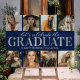 Celebrate the graduate with this black & faux silver graduation foam board featuring 8 photos of the grad, and a simple elegant template that is easy to personalize.