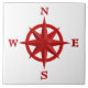 Ceramic tile in an 8-point compass rose design with a slight raised, 3-d effect - deep red on a white background