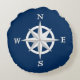 8-Point Compass Rose, White and Navy Blue Round Pillow