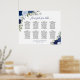 This elegant wedding seating chart comprises of 8 tables and is designed to add a touch of rustic charm to your special day. The exquisite hand-painted watercolor design showcases a beautiful arrangement of dusty blue, navy, and indigo roses adorned with sprigs of eucalyptus leaves and garden greenery. The seating arrangement can accommodate up to 80 guests with 10 seats per table with an elegant script calligraphy title and space for the couple's names and wedding date at the bottom. This seating chart is a wonderful way to elevate the style and elegance of your wedding reception, while making it easy for your guests to locate their seats.