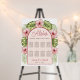 A tropical floral seating chart, appropriate for a Hawaiian wedding / luau.