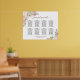 This beautiful 8 table wedding seating chart features a rustic boho chic design with hand painted watercolor roses and blossoms in shades of blush pink, coral peach, dusty rose, and mauve, surrounded by sprigs of eucalyptus leaves and garden foliage. The traditional layout has space for 80 guests with 10 seats per table, with an elegant script calligraphy title and space for the names of the couple and wedding date at the bottom. Wonderful way to add style, class, and welcoming charm to your wedding reception while making it easy for your guests to find their seats.
