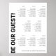 This customizable simple elegant 8 table wedding seating chart template will be a great addition to Wedding party decor. It features Be our guest written in bold black letters against white background. Text is fully editable, to make advanced changes, please select "Click to customize further" option under Personalize this template. Matching Wedding enclosure card, RSVP card and day-off stationery is also available, check out "Black and white Bold letters wedding stationery and decor" collection in my store Wowweds.
