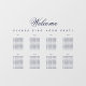 All text is navy blue. The word Welcome is written in an elegant calligraphic script, the rest in caps. The tables are on 2 rows. Above them and under the word Welcome, there is the message "Please find your seat!".