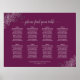 This beautiful wedding seating chart features a chic sophisticated design with gray text on a magenta or cassis purple background. The title is an elegant script calligraphy reading: please find your table. The corners are decorated with silver faux foil frills in a delicate floral pattern. Includes seating for 8 tables or 80 guests with 10 seats per table. Wonderful way to help your guests find their tables at your reception while adding a touch of style.