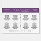 8 Table Wedding Seating Chart. Seats up to 80 Guests, with 10 per table. White background with black typography. Please Find Your Seat is written at the top in elegant White script against Dusty Violet purple border. NOTE: Click Personalize to Edit Background to a different color on left-hand side color palette, or type in a hex code number to match your colors. Insert Bride and Groom's First Names and Last Name, and Date of Wedding. Insert Reception Hall Name on upper left-hand corner (or delete to leave blank). Backside is solid Black (keep or change color). Table Numbers with up to 10 lines for typing in Guest Names (with LAST Names typed in Alphabetical Order, per table) for ease finding names. Welcome Family and Friends is written at bottom. Dance Floor is written down the center in Dark Grey (keep or delete text). Original Design © TamiraZDesigns.