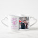 8th anniversary tourmaline heart personalized photo lovers mug set. The design features white script typography with your names and the words celebration of 8 years of love in script style font and a line art heart gemstone. Personalize with your own two photos one on each mug, names and anniversary wedding dates. The eighth wedding anniversary is associated with the gemstone two toned pink aqua tourmaline and the heart symbolizes love. Other matching wedding anniversary gifts and paperware items available. Line art and design by www.mylittleeden.com on zazzle.