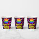 This fun and joyful birthday themed paper cup design features a large number “8” with a rainbow spectrum gradient inspired pattern, along with the message “Happy 8th Birthday,”, and a personalized name. The background features a pattern of heart shapes with colors like pink, purple, and red. Fun, happy paper cups like this might be fun to use at a birthday party being held to celebrate somebody’s eighth birthday. [~Z0000548]
