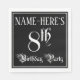 This luxurious and fancy birthday paper napkin design features a personalized name and the message “8th Birthday Party”. The large number “8th” and the words “Birthday Party” are in opulent script-style text. The background is colored black by default (although it can be customized). Fancy, opulent paper napkins like this might be useful at a birthday celebration/party being held to celebrate somebody’s eighth birthday. [~Z0000563]