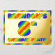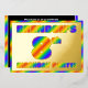 The front of this upbeat and fun eighth birthday celebration/party foil invitation card features a personalized name, a large number “8th”, the message “BIRTHDAY PARTY!”, and a border, all featuring a joyful, colorful, rainbow spectrum inspired gradient pattern. The back features personalized details about the event, such as the date, time, location/venue, and any other information that may be important. Eye-Catching, exciting, editable invitations like these might be used to invite guests to a birthday gathering being held in celebration of somebody’s 8th birthday. [~Z0000593]