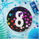Neon rainbow dot pattern on black background for 8th birthday party.