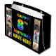 This bold and cheerful birthday-themed gift bag design features the message “HAPPY 8TH BIRTHDAY,“ with the text having a multicolored rainbow spectrum inspired gradient pattern, along with an editable recipient name. To the left and the right of the rainbow-patterned message on the front are some photos that can be personalized, perhaps with photos of the recipient, the recipient’s family and friends, and/or the sender(s) of the gift. A birthday themed gift bag like this might be a fun way to wrap a present being given to celebrate somebody’s eighth birthday. (Photography © Storytree Studios, Stanford, CA.) [~Z0000668]
