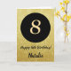 8th Happy Birthday Black and Gold Glitter Card with personalized name. For further customization, please click the "Customize it" button and use our design tool to modify this template.