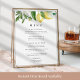 Elevate your table setting with this elegant lemon floral menu sign by Redwood & Vine Design Co. Featuring watercolor lemons, white florals, and stylish typography, this design is perfect for a bridal shower, wedding, rehearsal dinner, or summer celebration. A fresh and refined way to showcase your event meal. Available professionally printed or as a digital download for local or home printing.