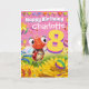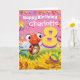 A gorgeous little ladybug hovering above sunflowers and bringing a colorful birthday greeting for the very special 8 year old in your world.
