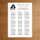 This “90 Funny Penguin Greeter Wedding Seating Chart” will fit 90 guests. Your guests find their places, and they can enjoy your special celebration.