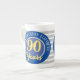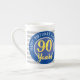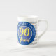 90 Years Birthday Commemorative Mug with grey horizontal stripes. 90th birthday gift.