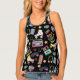 Women's All-Over Print Racerback Tank Top, Black Piping, S