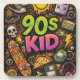 90s Kids Grunge Seamless Pattern: Pizza, Skeletons Beverage Coaster