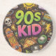 90s Kids Grunge Seamless Pattern: Pizza, Skeletons Coaster