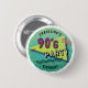 90's Party button featuring a fun style typography of '90's Party''. Design includes elements of blues, oranges, and pinks, yellow, ripped edges, geometric patterns and shapes inspired by the 90's. Includes a template for personal customization.