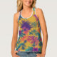 ransport yourself back to a tropical paradise with this 90s-inspired graphic. This sunshine yellow tank top features a vibrant all-over print of palm leaves and hibiscus flowers in shades of green, pink, and orange. The design channels the carefree vibes of the 90s and brings a touch of summery flair to any outfit. The relaxed fit and soft, lightweight fabric ensure all-day comfort, whether you're cruising the boardwalk, attending a music festival, or just hanging out with friends.