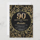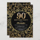 90th Birthday Black and Gold Floral Pattern Invitation