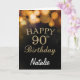 90th Birthday Black and Gold Glitter Card with personalized name. For further customization, please click the "Customize it" button and use our design tool to modify this template.