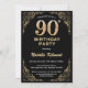 90th Birthday Black and Gold Glitter Frame Invitation
