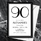 90th Birthday Black and White Modern Minimalist Invitation