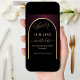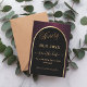 A Save the Date card for a 90th birthday party. A black and burgundy background, decorated with a faux gold arch. Personalize and add a date and your name. The text: Ninety and Save the Date is written with a large trendy hand lettered style script.