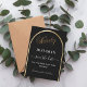 A Save the Date card for a 90th birthday party. A black background, decorated with a faux gold arch. Personalize and add a date and your name. The text: Ninety and Save the Date is written with a large trendy hand lettered style script.