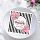 90th birthday black stripes pink florals classic napkins