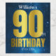A gorgeous blue and gold effect 90th birthday wine label. This space themed design is the perfect party or gift wine label. Personalize with our own custom name and date. Gold and white typography on a universe background.
