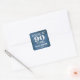 90th birthday favor tag stickers, featuring rustic blue linen burlap charm with chalkboard letters in white and personalized with name and date below.