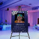 A welcome board for a 90th birthday party. A navy blue background with elegant faux silver stars. The blue color is uneven. Personalize and add a photo, name and text. White letters.