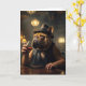 A distinguished bulldog wearing a hat and vest sits in an elegant, dimly lit 1920s speakeasy room holding a glass of whiskey for a 90th birthday.