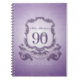 Design in the style of coat of arms in purple colors with large 90th + "BIRTHDAY CELEBRATION" onto a ribbon. Design on spiral notebook (guest book) with name. You can easily change name (color, font, size and position) by clicking the customize button. Available with design for 60th,70th, 80th, 95th birthday. Matching birthday save the date, birthday invitation, postage, pillow, mug and other birthday gifts for grandmothers.