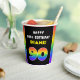 This upbeat and cheerful birthday themed paper cup design features a large number “90“ having a vibrant rainbow spectrum inspired gradient pattern, along with the message “HAPPY 90th BIRTHDAY,”, and a customizable recipient name. Joyful birthday themed paper cups like this might be used at a party for somebody who is celebrating their ninetieth birthday. [~Z0000639]