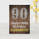 This western look and country inspired birthday greeting card design features a large rustic inspired number "90", the message "Happy 90th Birthday,", a personalized name, and a faux/imitation wood grain inspired style pattern background. The inside has a customizable birthday greeting message, or could perhaps be cleared and left blank if a message is to be written by hand instead. A personalized birthday greeting card like this might be a fun way to send some birthday wishes to somebody who is celebrating their ninetieth birthday. [~Z0000469]